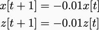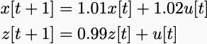 Input u[0]=1, and the “x” variable goes to infinity, but the “z” variable goes to zero. However, under the negative state feedback rule “u[t]=-x[t]”, the systems are identical