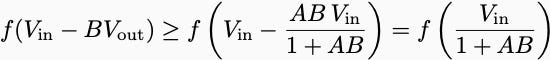 This is exactly analogous to the equation we had for the linear amplifier. Rearranging the inequality gives us the expression.