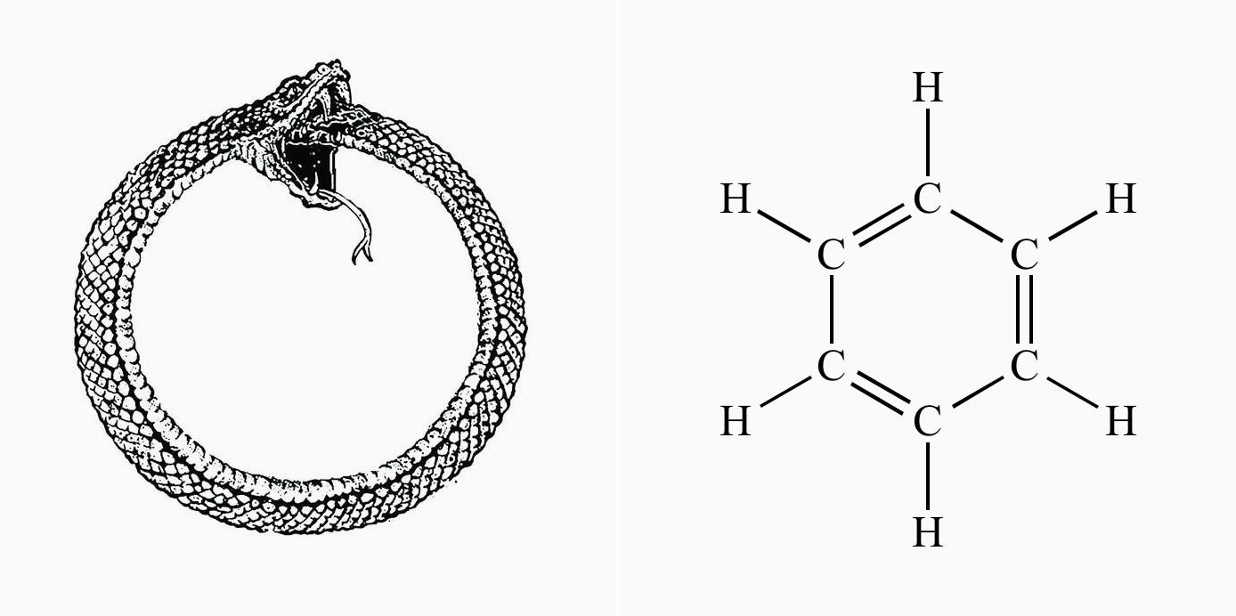 Meehl describes Reichenbach’s core example of a clear context of discovery. Apparently, and apocryphally, August Kekulé had a dream of the ouroboros. This dream led him to posit the shape of a benzene ring. Surely, the structure of Benzene isn’t evaluated based on what Kekulé dreamed before writing it down. The dream is the context of discovery. The chemical evidence for the ringed structure of Benzene based on observed isomers is the context of justification. In this story, the two have nothing to do with each other.